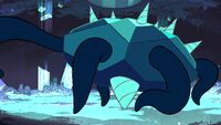 En fin, en ese episodio pude notar una particularidad, que pude cerciorar en la wiki de Steven Universe, es que cuando la gema del ciempies toca el piso y manifiesta su forma material, se puede notar que antes de verse la silueta de la Madre Ciempies, se nota una forma humana arrodillada apoyando su rostro en sus manos y sus brazos en las piernas, como si estuviese sufriendo... entonces ¿Las Bestias de Cristal pudieron haber sido Crystal Gems en el pasado?